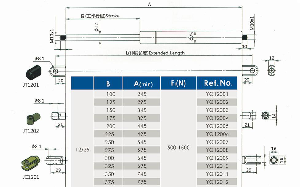 注:由于氣彈簧是非標準的,以上僅為型號的一部分。我們可以根據(jù)客戶的要求定制。