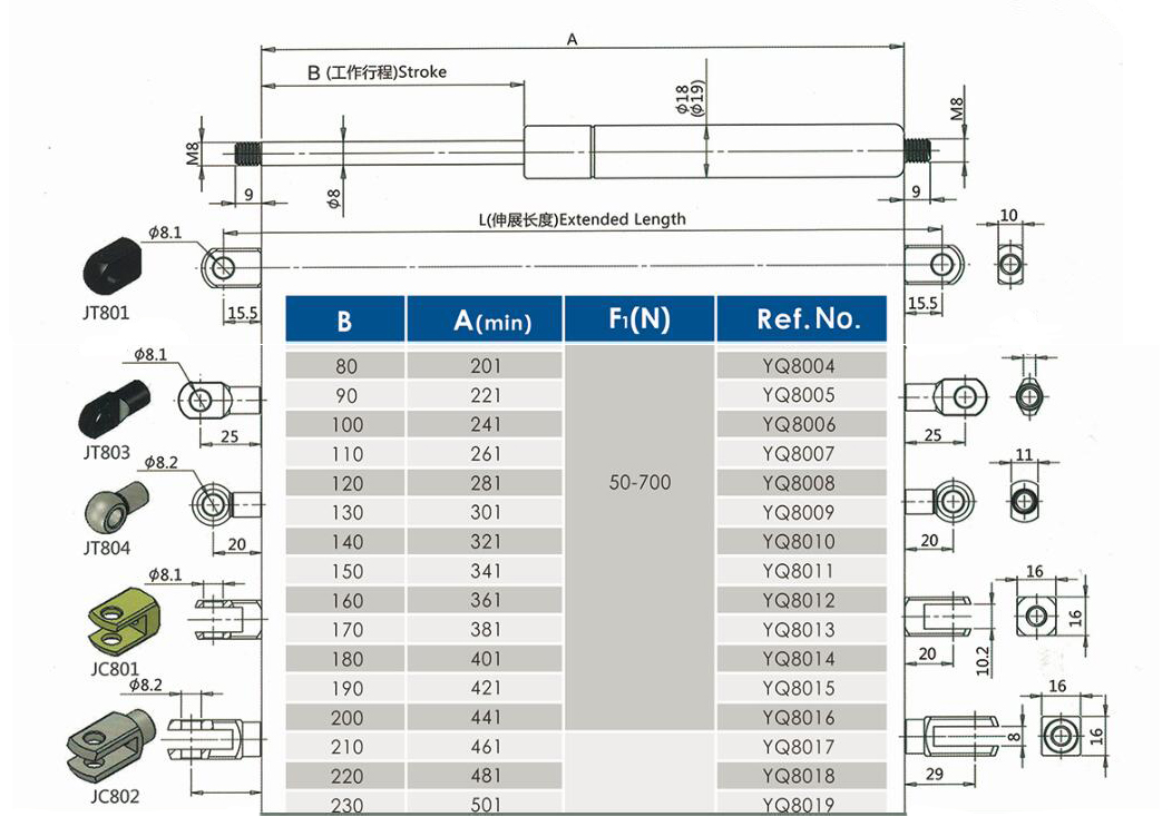 汽車氣彈簧-舉升氣彈簧YQ8/18-2