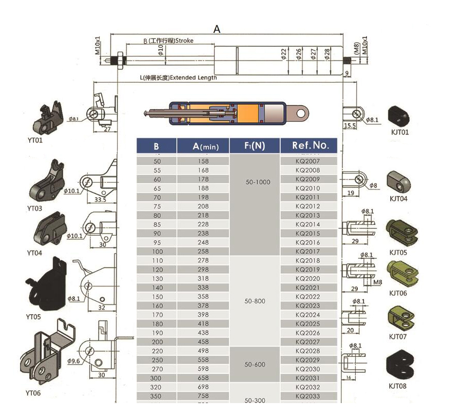 注:由于氣彈簧是非標準的,以上僅為型號的一部分。我們可以根據客戶的要求定制。