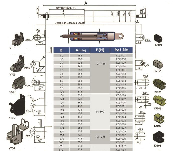 注:由于氣彈簧是非標準的,以上僅為型號的一部分。我們可以根據(jù)客戶的要求定制。